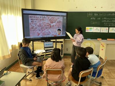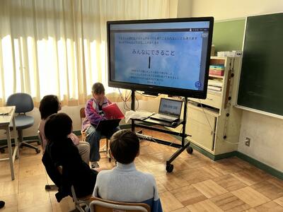 先日、4年生が総合学習で、発表会を行っていました。