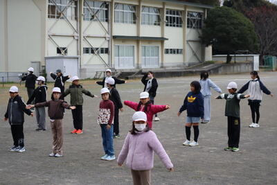 子どもたちは、いつものようにラジオ体操で体を温め、