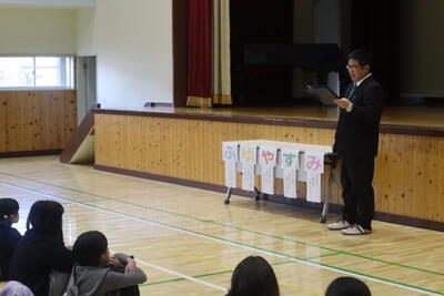 校長先生から、2学期の子どもたちのがんばりを認める励ましの言葉とともに、
