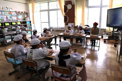 1年生 初めての給食 投稿: 富戸小管理者 (16:42) カテゴリー: 今日の出来事 1年生は、この日が小学校に入学してから初めての給食でした。 「早く給食が食べたい!」 と、とても楽しみにしている子もいました。 子どもたちに、どれがおいしいか聞いてみると、 にこやかな笑顔で 「全部!」 と答えている子がたくさんいました。 おいしそうに食べる1年生を見るのは、 微笑ましいひとときでした。 これから、給食ももりもり食べて、 健康な体をつくってほしいと思います。